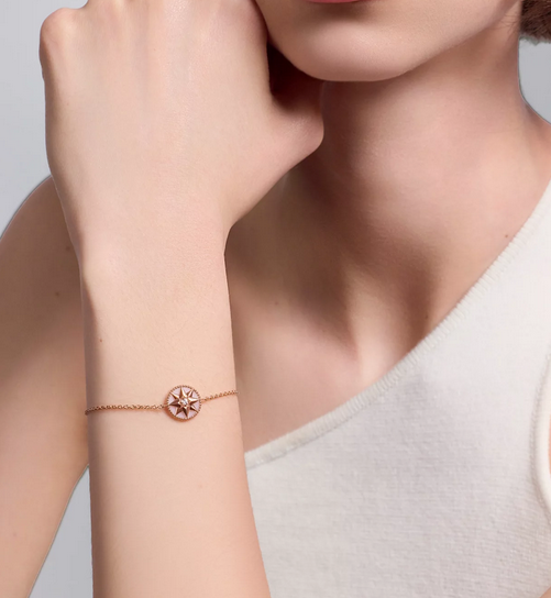 Victoire de Castellane reinterprets Mr. Dior's lucky star in the form of a wind rose, an eight-pointed star design. A ring of beading encircles the motif, which turns to switch between the gemstone or wind rose sides. Length: 17.5 cm / 7 inches with rings to adjust the chain to either 14.5 cm / 5.75 inches or 16 cm / 6.25 inches The adjustment rings on the bracelet allow it to be worn in a shorter or longer version Delivery within 72 hours Low cost island wide delivery In-stock